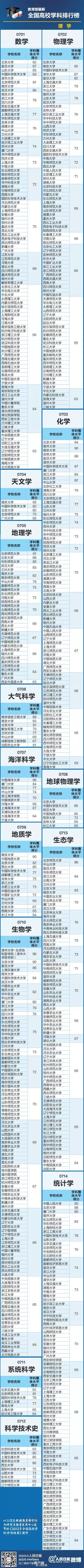 最全高校各学科排行榜