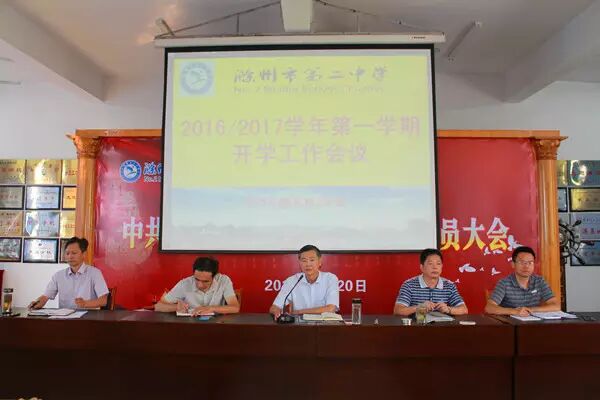 荷风清扬日,扬帆奋进时。8月30日上午,我校召开2016—2017学年度第一学期开学工作会议,主要任务是积极响应市委、市政府创建省级文明城市的号召,积极部署相关工作任务,切实提高教育系统文明创建工作水平,同时分析当前学校发展形势,明确新学期工作要求,动员全校奋力开创学校事业科学发展新局面。我校党委书记、校长胡刚,副校长高华文、夏家贵, 副书记储成东,副校长李进等全体教职员工参加会议,会议由校长胡刚主持。